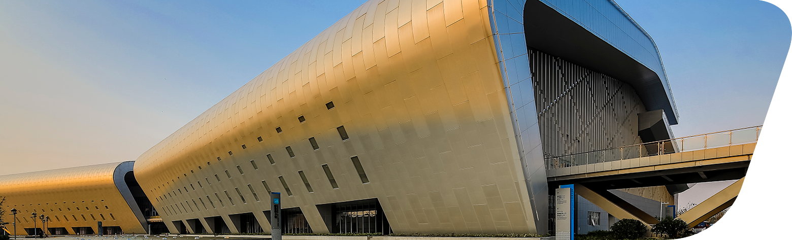 場館以“山水相依、五省通衢”為理念,采取山環(huán)水抱、山水相依的規(guī)劃格局